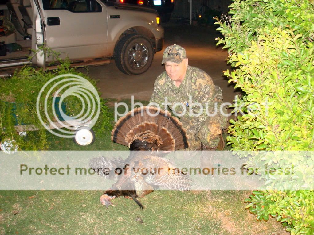 I know Jim got some good pics of his and Jory's birds but you know how I am about cameras. I got pics of the second bird I killed but the only pic I know of that was taken of the first bird was on a cell phone in the dark by our "guide." Not sure I will ever see that pic but he told me he would send it to me. Dang turkeys in Oklahoma are a lot like deer. They do not move until 15 minutes before dark and then come in gobbling and strutting.