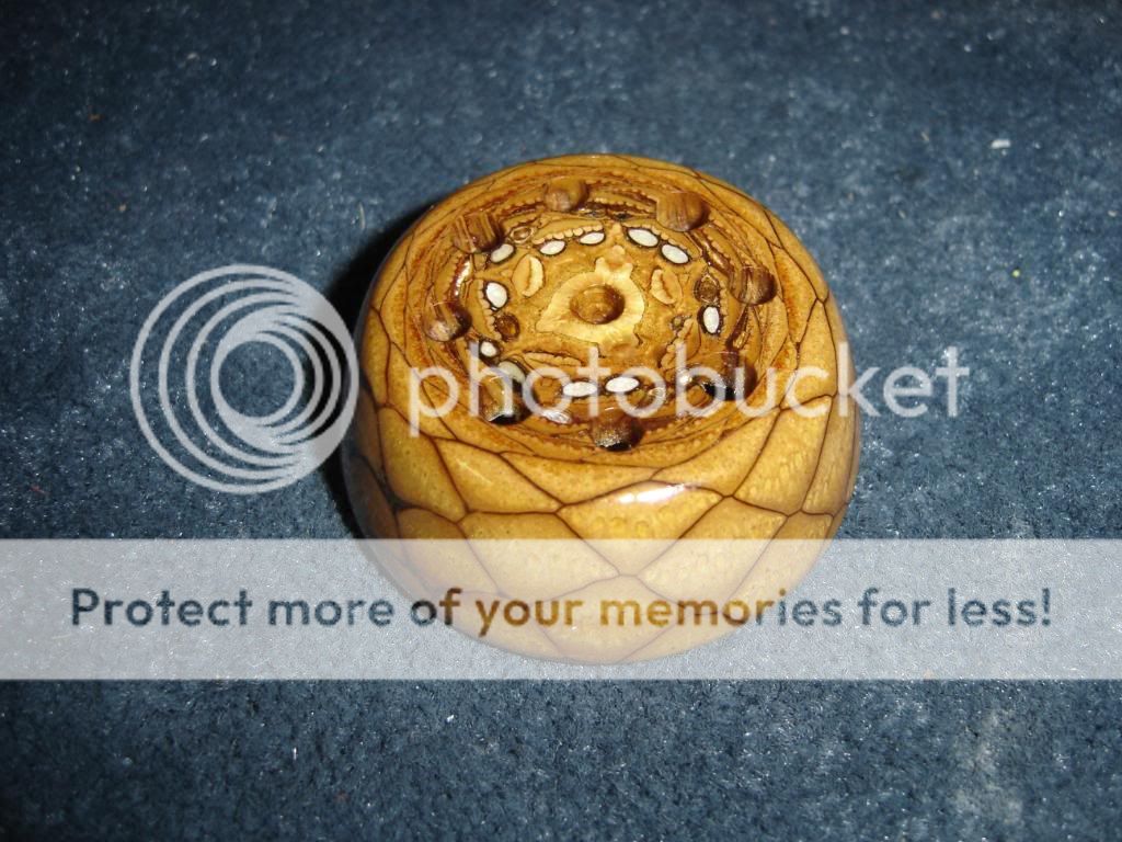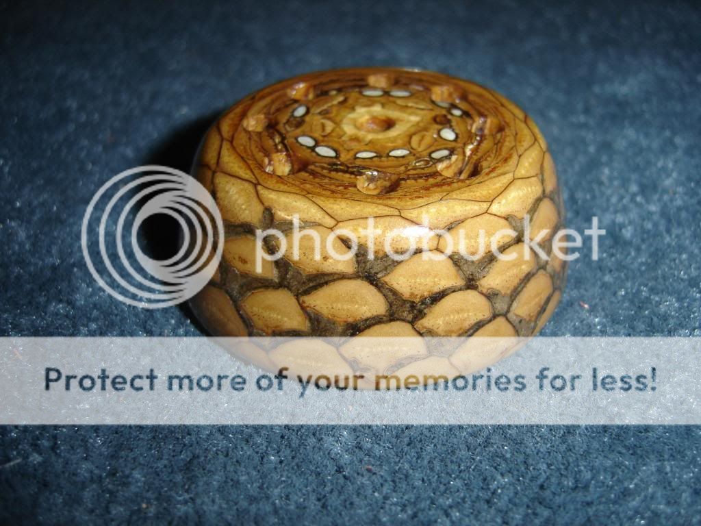 Quote from: woodwzrd on March 31, 2011, 12:00:44 AMThat is really cool. It has kind of a snake skin look. How much CA did it take to hold it all together?Half a bottle Seriously!