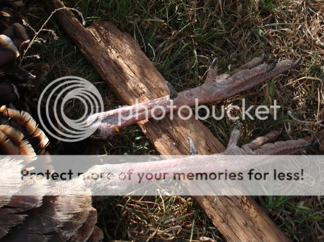 Both birds looked like very similar. They both had little scraggly, thin bears. One beard was barely 6 inches long and one had some strands 8 inches long. I guess the cuckle burrs keeps the beards pulled off. They both had decent spurs. One was about 1 1/8" and the other one about an inch.